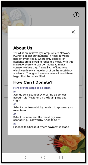 This mobile app allows anyone to sponsor basic necessities such as food and drinks from an array of choices from every vendor in Temasek Polytechnic. Making payment through paynow or paylah. Afterwards the admin would verify and release the item.