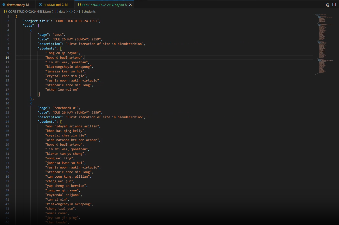 This is mainly used to extract specific students data. Where they would utilize a template to submit their project to. In which this script would then utilize to extract the necessary data.